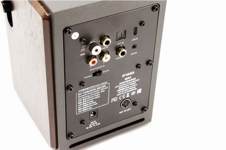 At the rear FIIO obviously hints at the built-in phono preamp since between the SA1 we see a turntable.