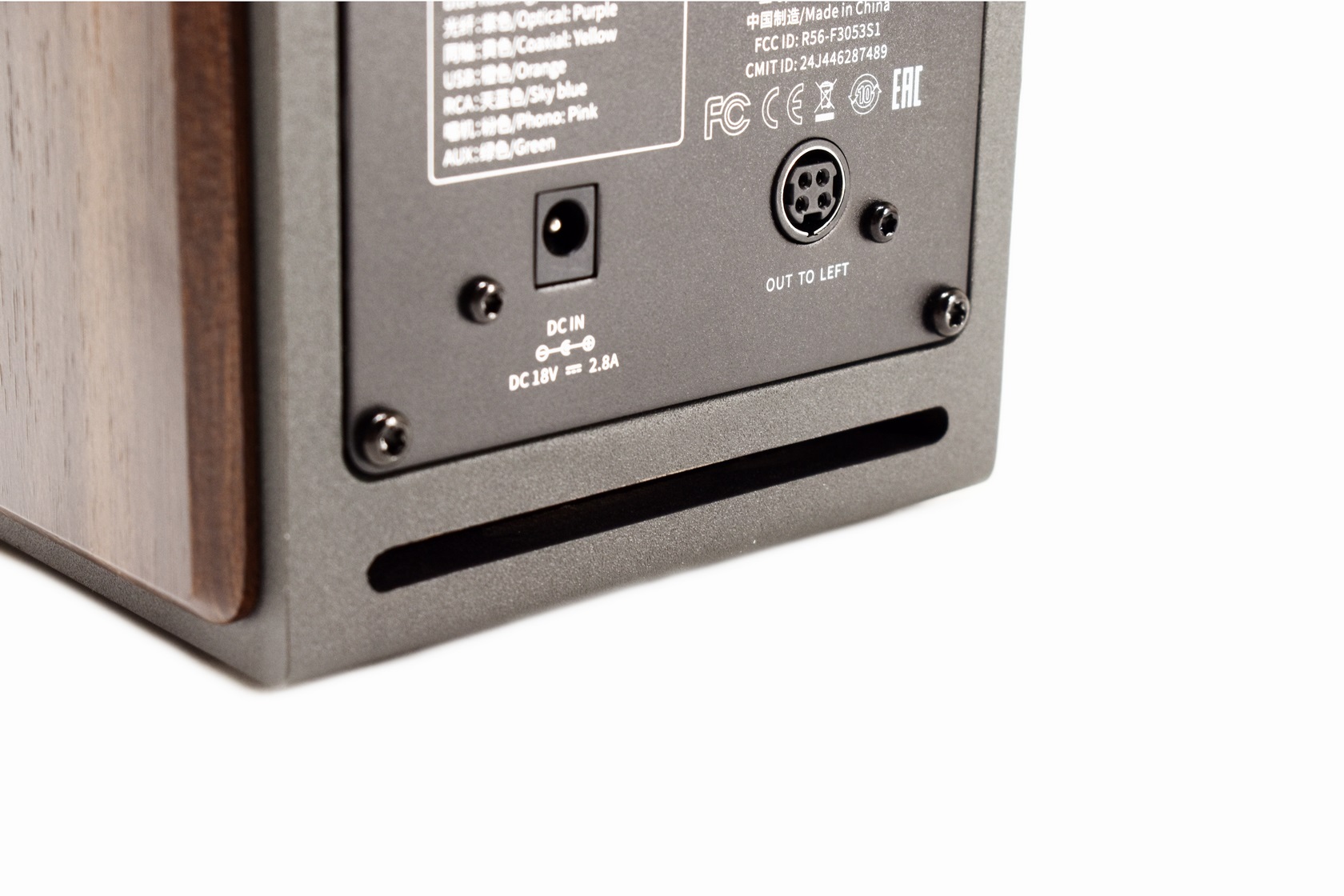 As expected, everything is located at the rear of the primary speaker and so here, we find the grounding, coaxial input, SPDIF/optical input, USB-C input, RCA input, subwoofer output, 3.5mm aux input, input switch, DC in and the speaker connection port.