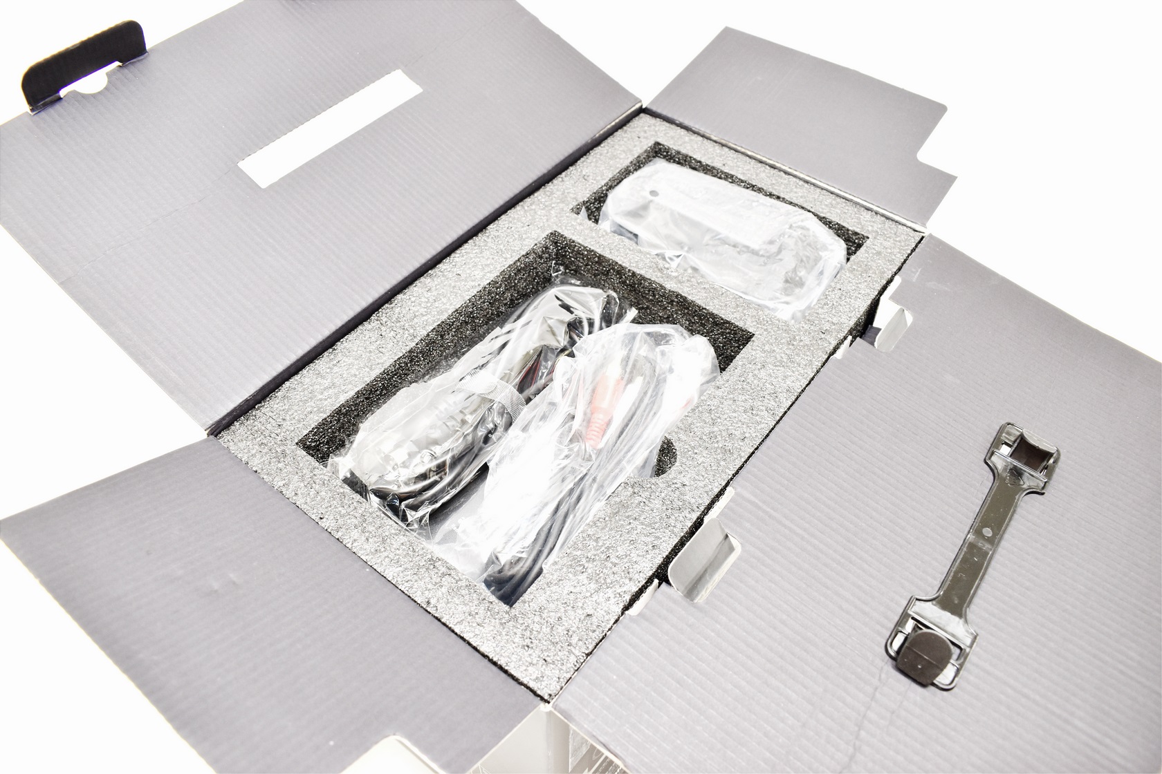 The company logo along with a large product picture, Hi-Res logos and the product name are all printed at the front of the box.
