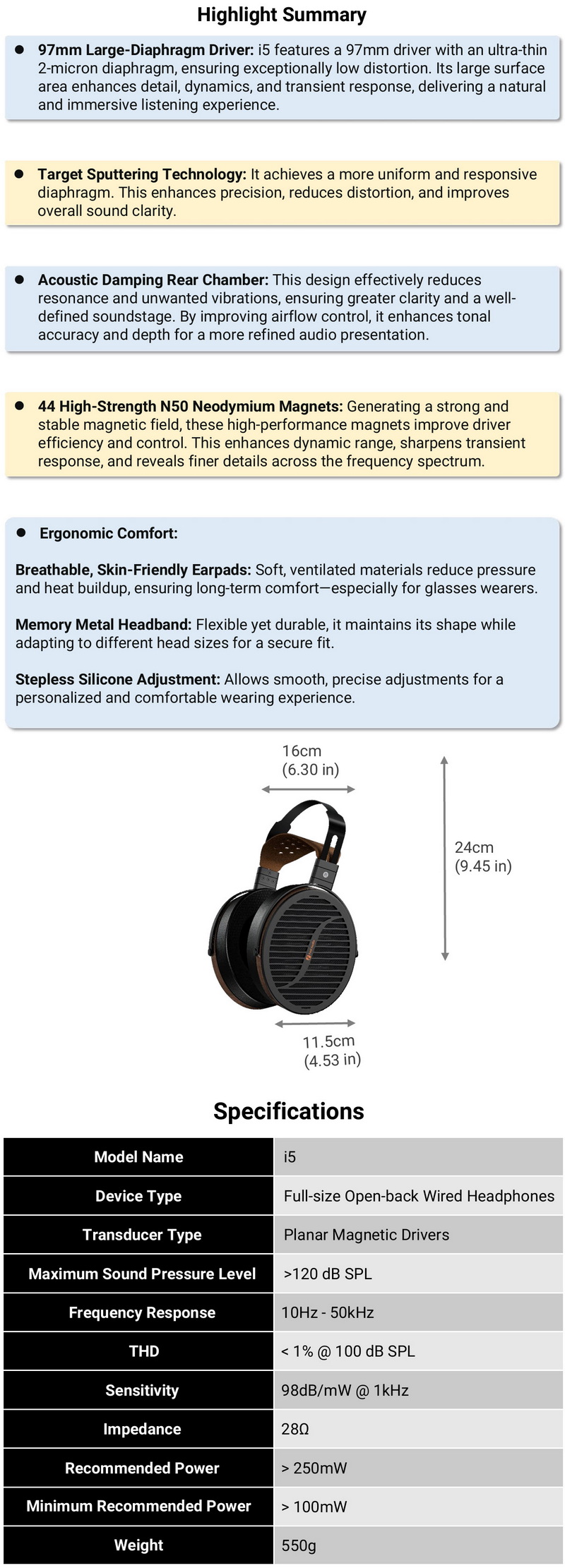Just like with most if not all planar magnetic headphones the i5 are large (perhaps even XL) in size.