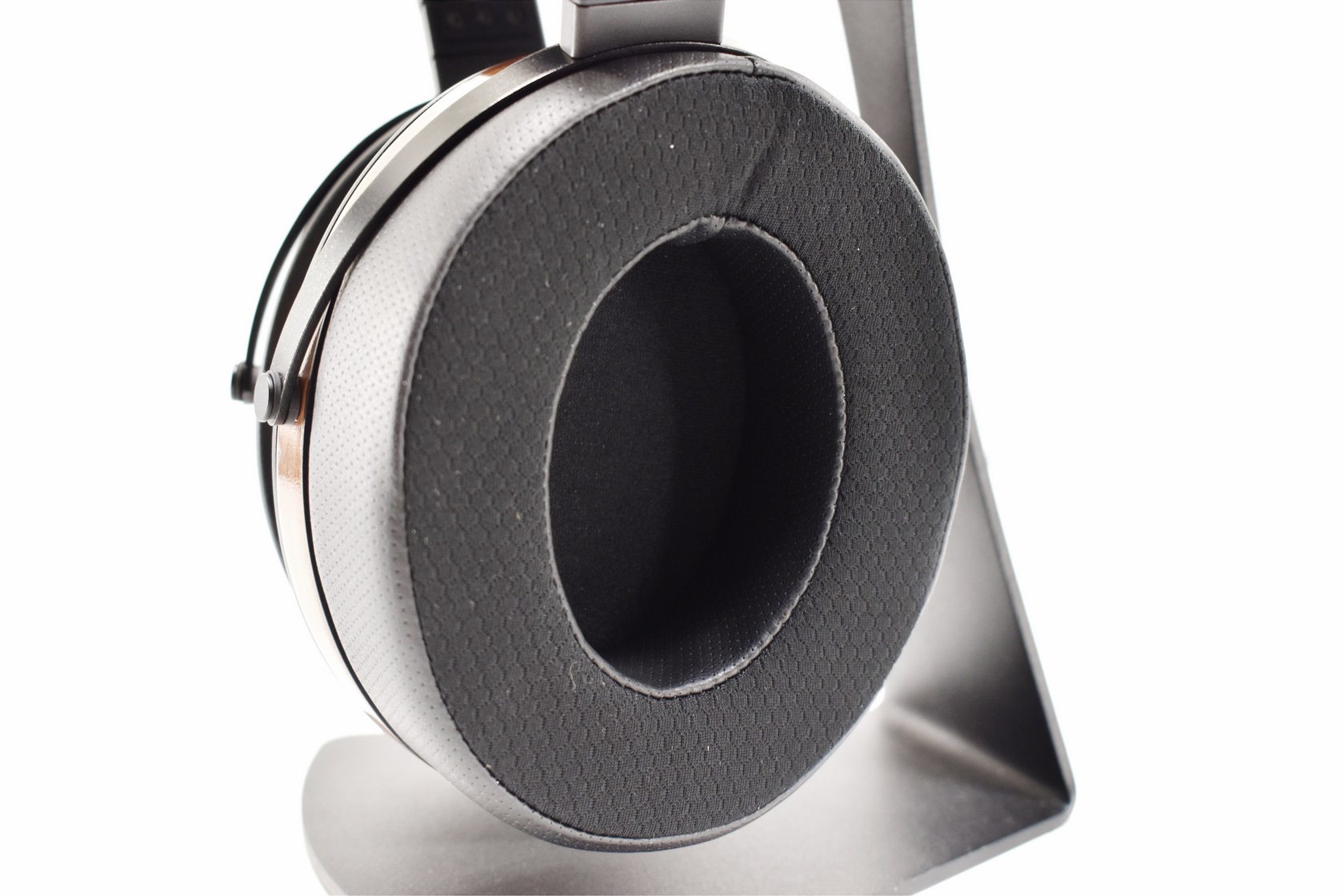 The large earpads are dressed in faux leather on the outside and soft fabric on the inside.
