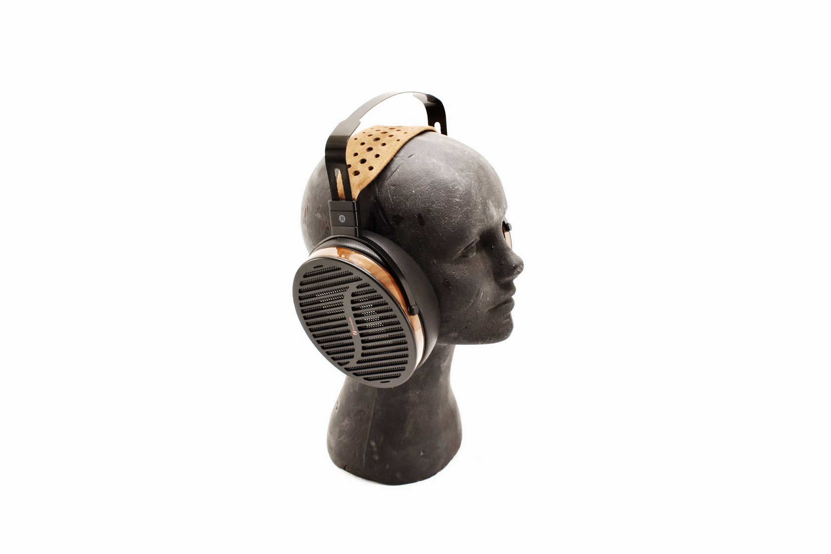 The head strap is made of suede leather, so it looks great if you ask me.