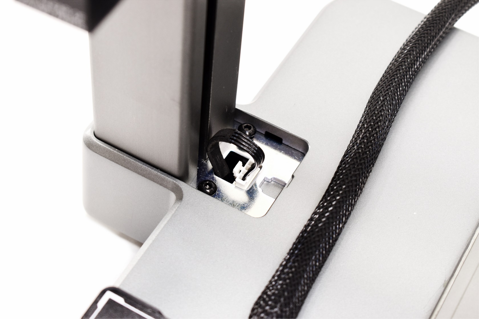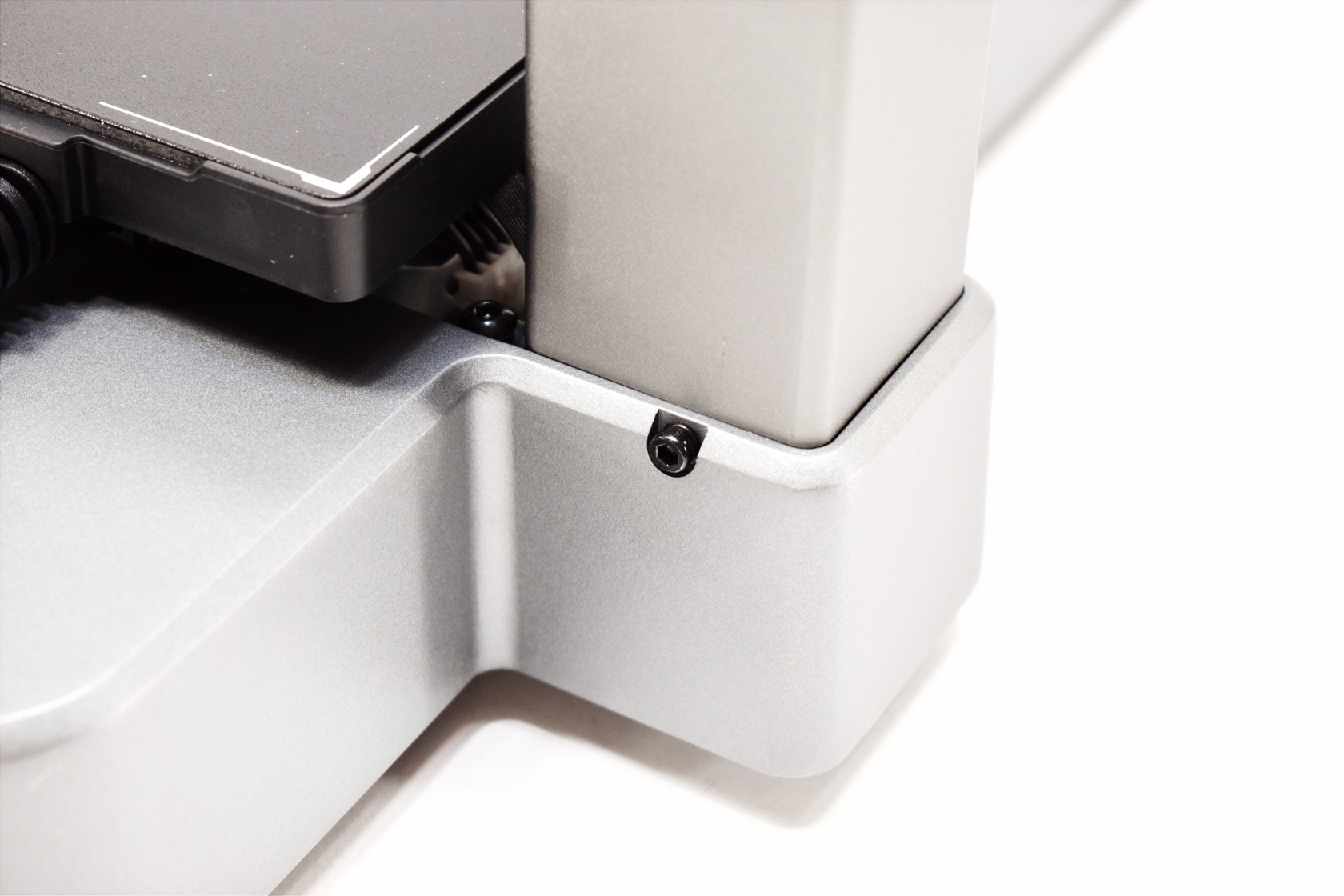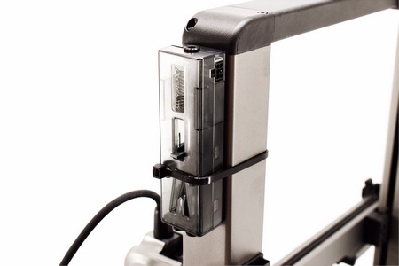Assembly of the Hi 3D printer is very fast, just attach both parts using the 6 bundled screws, connect the 4 cables (3 between the lower and upper half and 1 between the lower half and the extruder) and you're good to go.