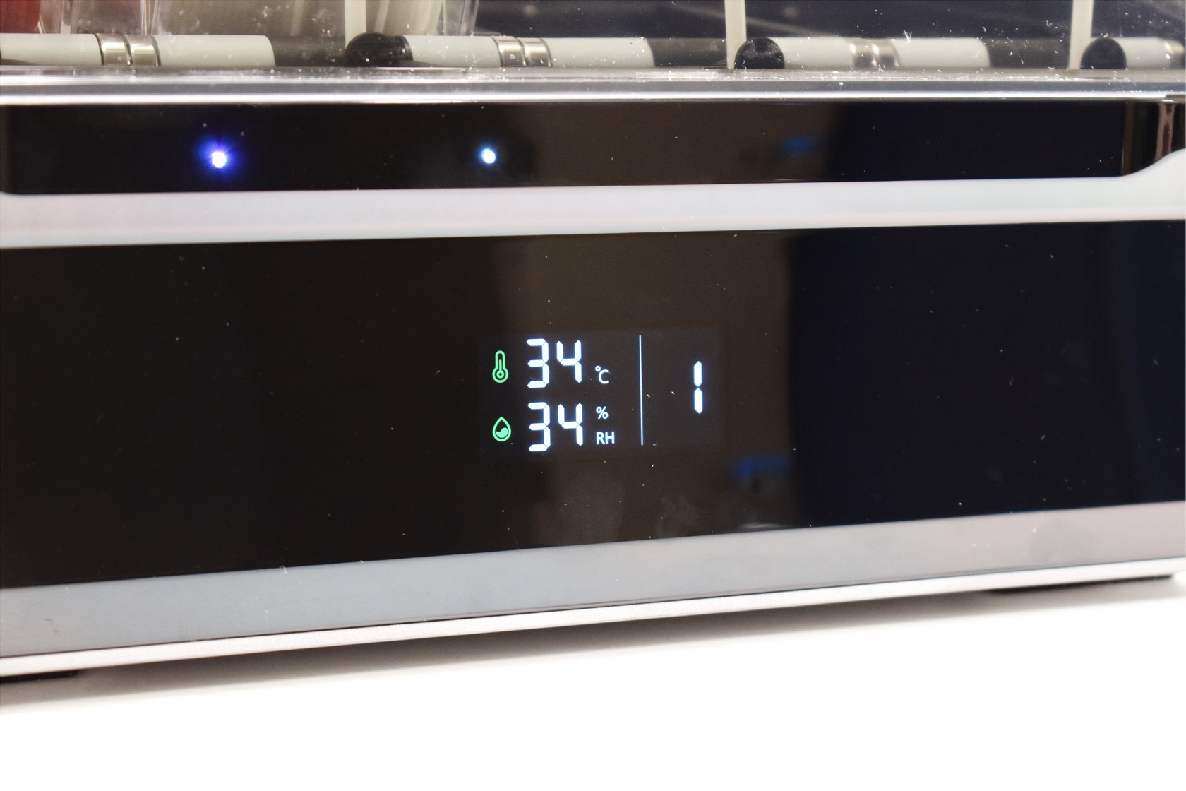 The CFS has a temperature and humidity display at the front.