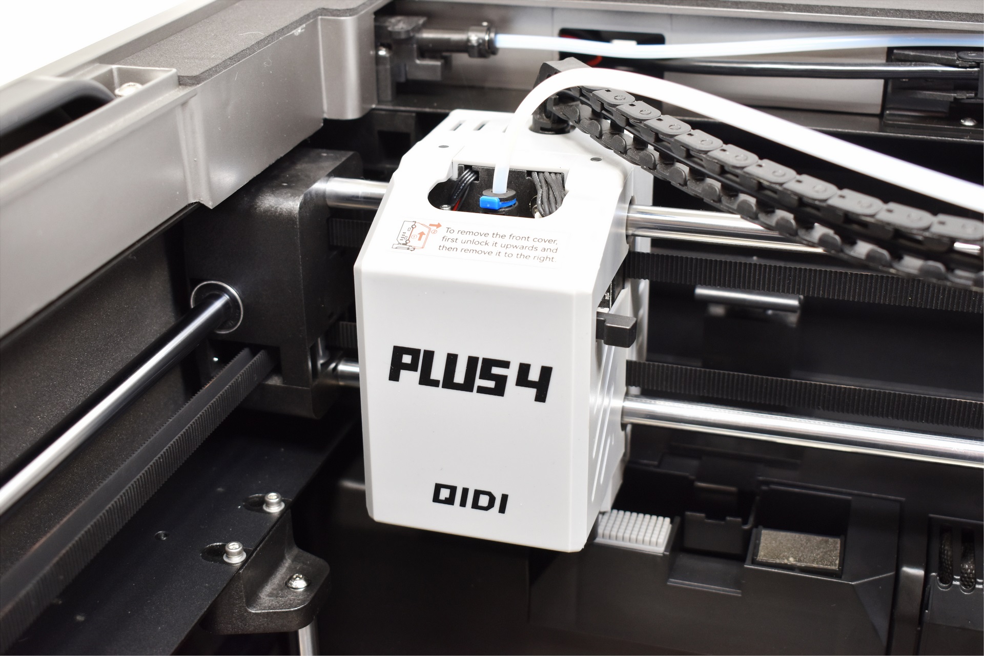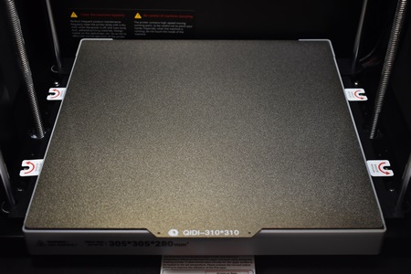 QIDI has used a textured PEI magnetic plate with the Plus 4 and as for the platform, it's held in place on the left and right by two pieces of plastic secured with 2 long screws each so you’ll also need to remove those (as you will the cable ties holding the direct drive extruder and the axis).