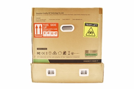 Creality uses a newly designed box for the K2 Pro Combo the front and rear of which have their logo and a product drawing.