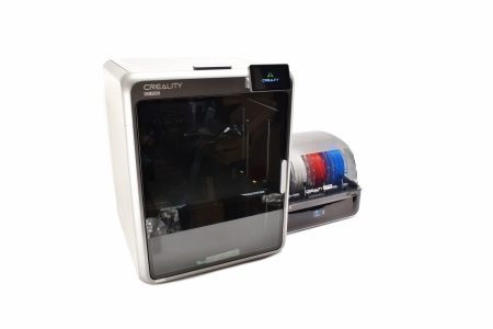 In most marketing pictures Creality has the CFS placed on top of the K2 Pro but since for PLA prints the top tempered glass panel should be removed, I chose to place it next to the printer instead (this is the best one can do with the bundled 485 cables).