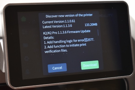 Typically, the printer will also check for firmware updates and in my case v1.1.3.6 was available.