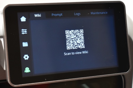 The android tab contains the 2D barcode (wiki), prompts, logs and maintenance options.