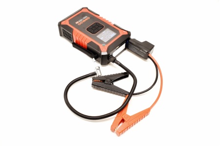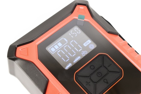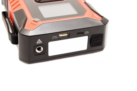 At the front we find the pump tube port, USB-A charging port, USB-C charging port, jumper cable port and the 400 lumen LED torch.