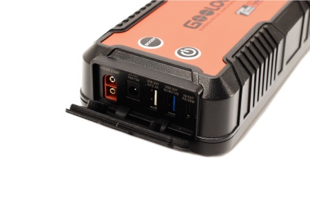 Since this is an IP65 certified device all ports (jump starter, two USB-A, USB-C, DC) are located behind a rubber cover at the front.