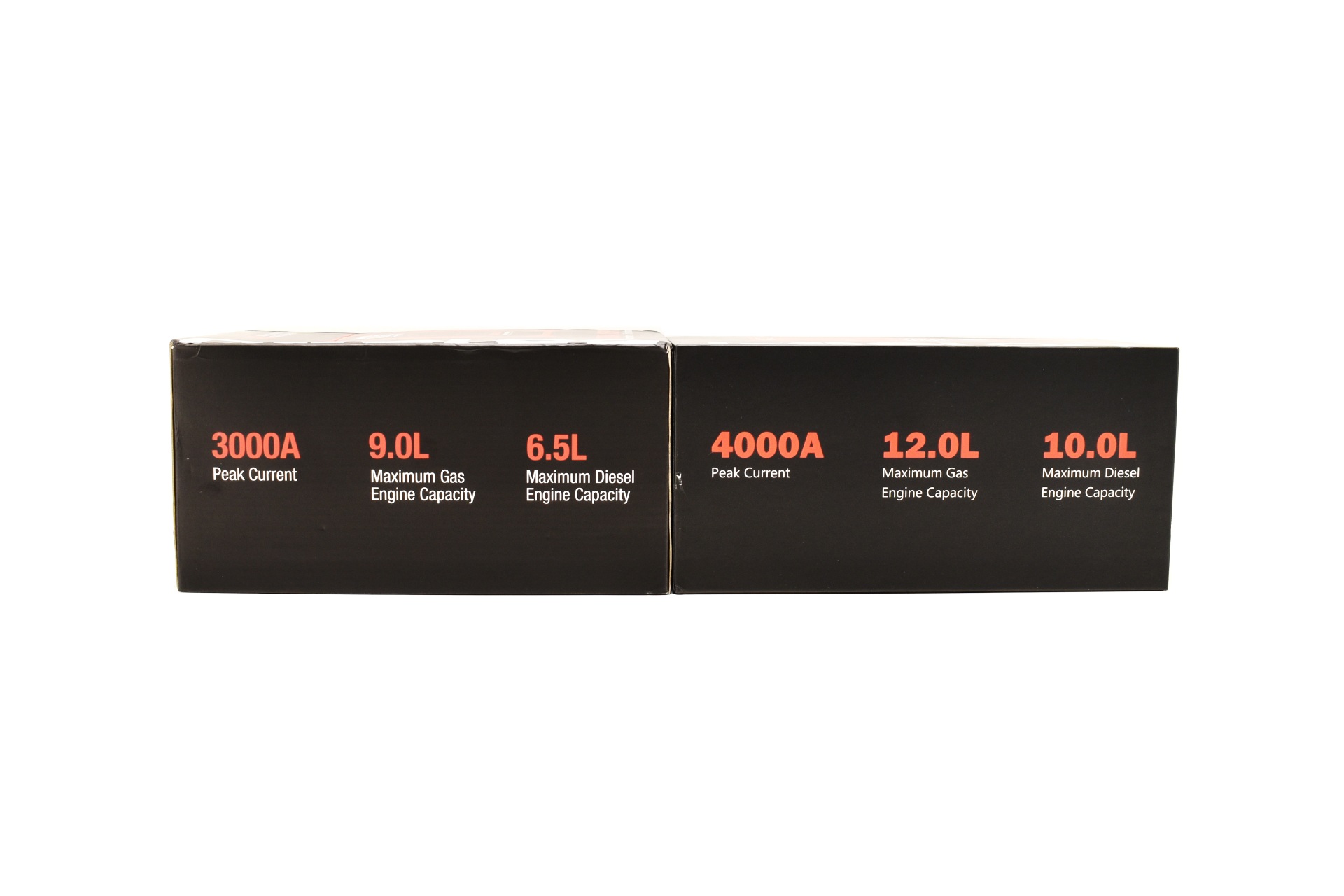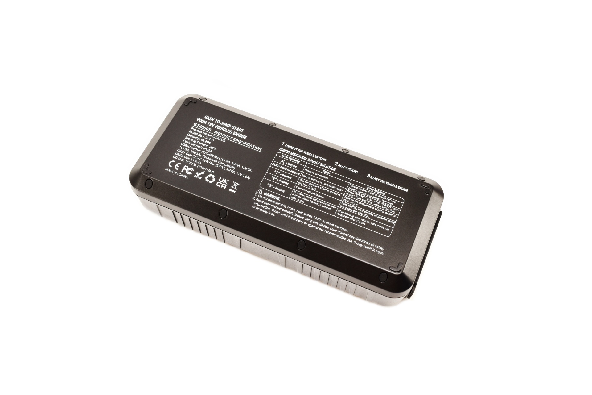 The Gooloo A3 centers its versatility around a 44.4Wh battery, delivering 3000A peak current, a 150 PSI tire inflator (5 modes), USB power outputs, and emergency LED lighting (400 lumen), all managed through a 3.2″ LCD screen that gives clear, real‑time status feedback. That energy reserve supports multiple jump‑starts and inflation cycles while handling engines up to 9.0L gas / 6.5L diesel. It’s also protected by a total of 10 built-in smart safety protections (over-charge, over-current, short-circuit, reverse polarity, AI software, high and low temp, spark-proof, over-voltage, over-load and reverse charge). The GT4000S doubles the capacity with an 88.8Wh battery, enabling its 4000A peak output, 100W bi‑directional fast charging, rapid 1.2‑hour recharge, 10 built-in smart safety protections (over-charge, over-current, short-circuit, reverse polarity, AI software, high and low temp, spark-proof, over-voltage, over-load and reverse charge), emergency LED torch (400 lumen) and laptop‑grade Type‑C power delivery. It also features the same 3.2″ LCD display (size-wise), but adds IP65 certification for dust and water resistance, making it the more rugged option for harsher environments. With support for 12L gas / 10L diesel engines and a 24‑month standby, it stands as the heavy‑duty, weather‑ready choice for drivers who want maximum power and durability.