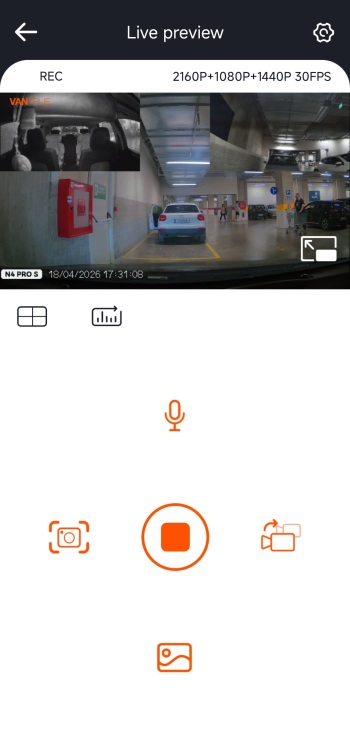 The Vantrue app connects to the N4 Pro S via 2.4/5GHz Wi-Fi.