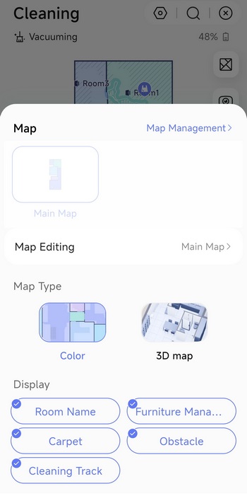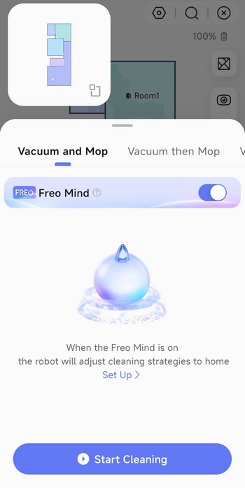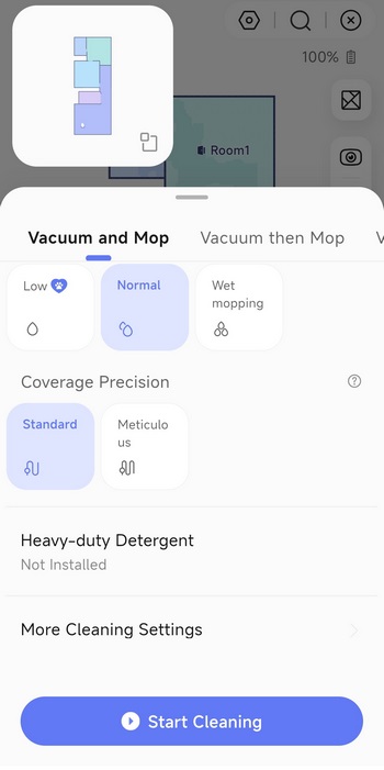 The Narwal app hasn't changed much since I reviewed the Freo model so from the main screen you can check the current map and select a cleaning mode from the lower end.