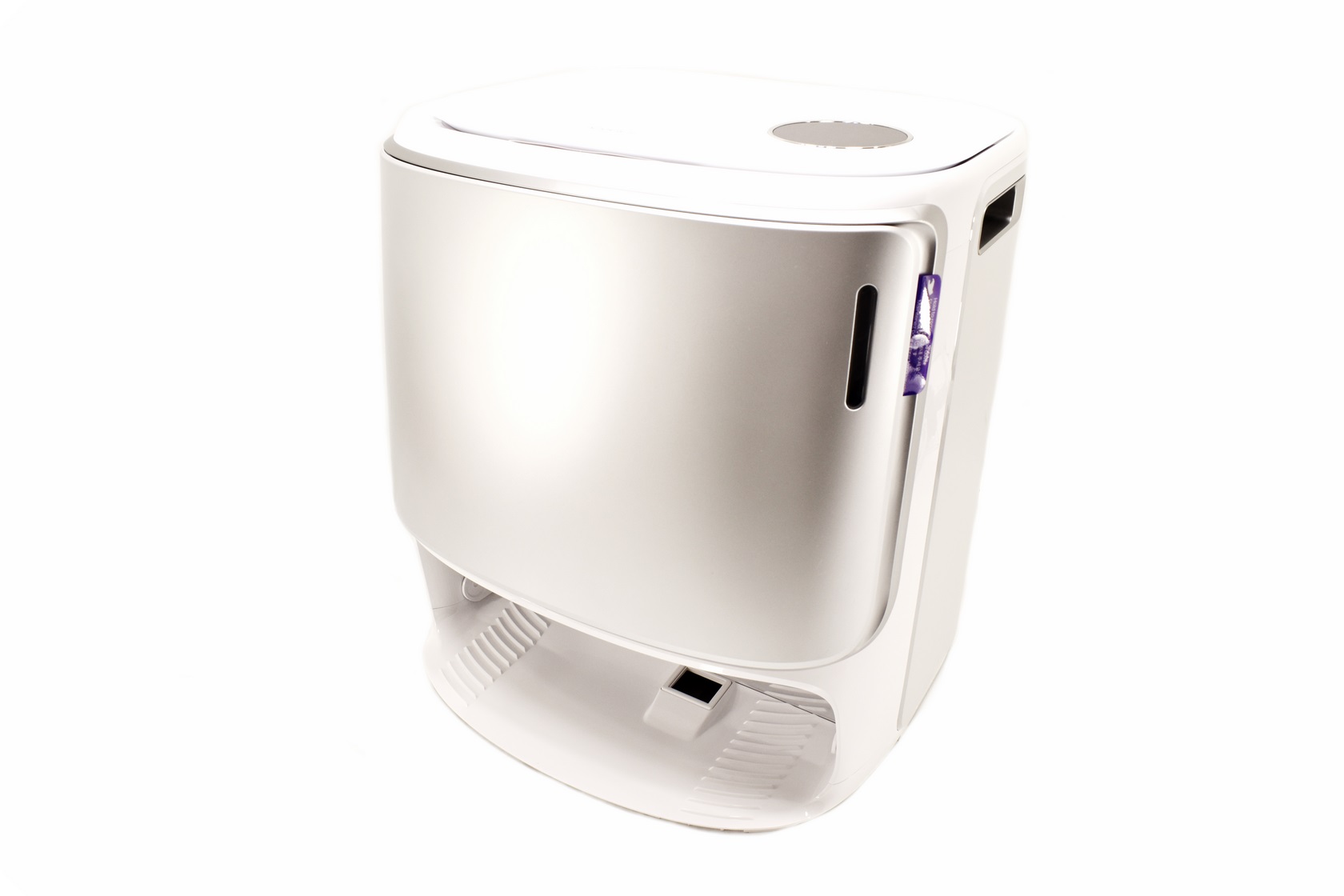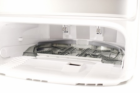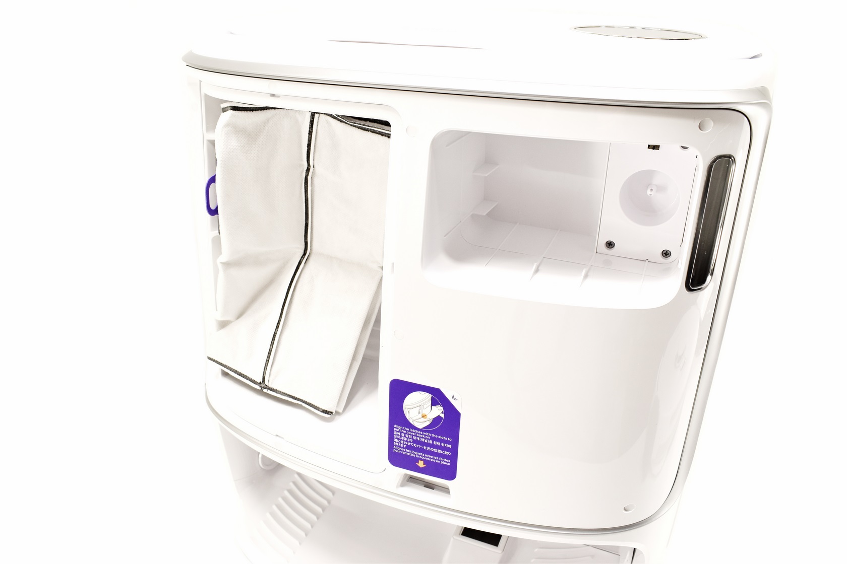 Removing the fascia as seen above reveals the pre-mounted dustbin bag, the cleaning solution mount and current level viewer.