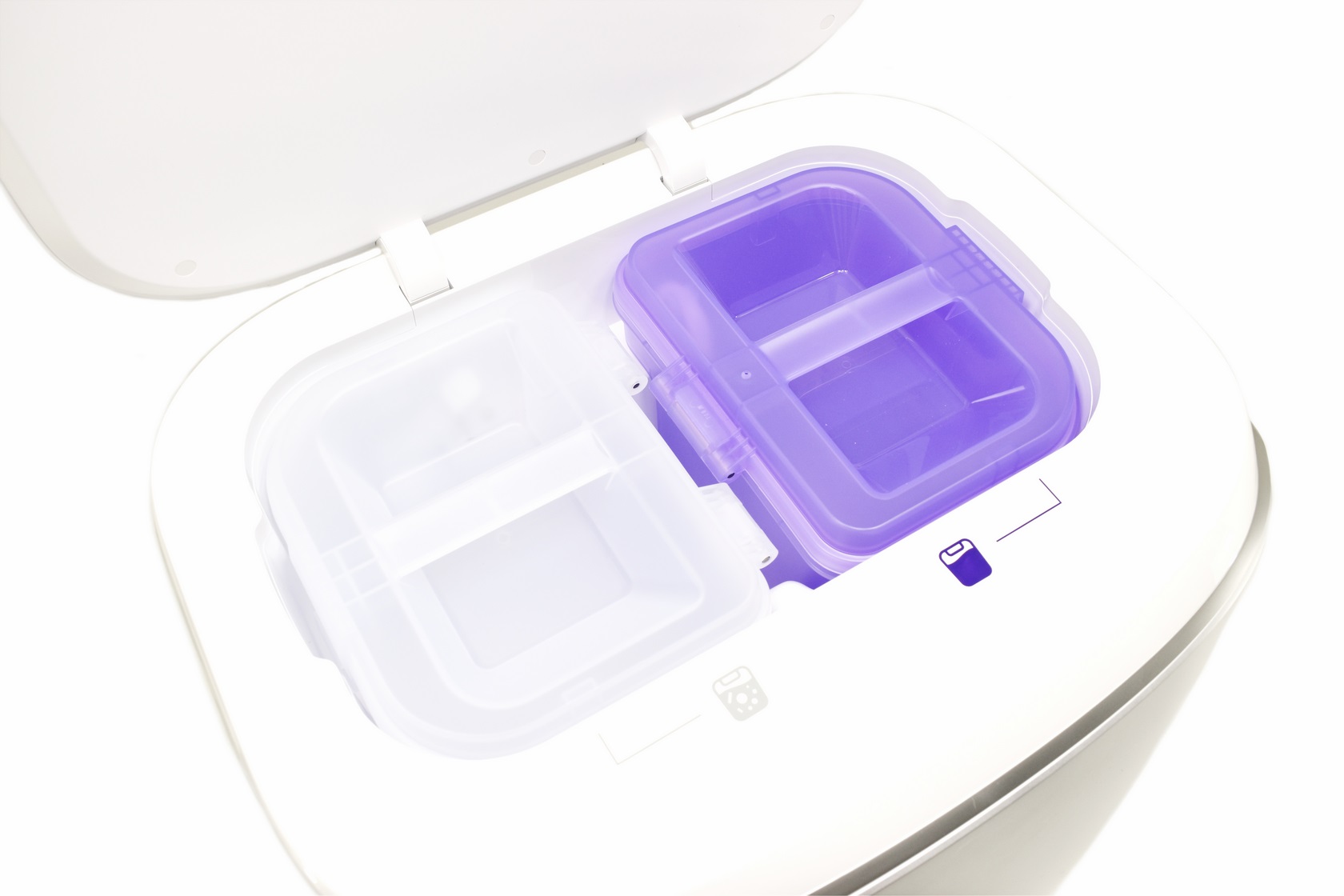 Again, the top opens to reveal two plastic tanks, a 5l one for clean water and a 4.5l one for dirty water.