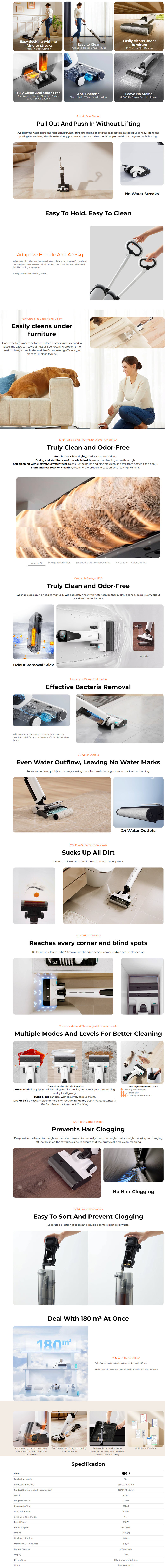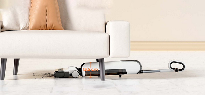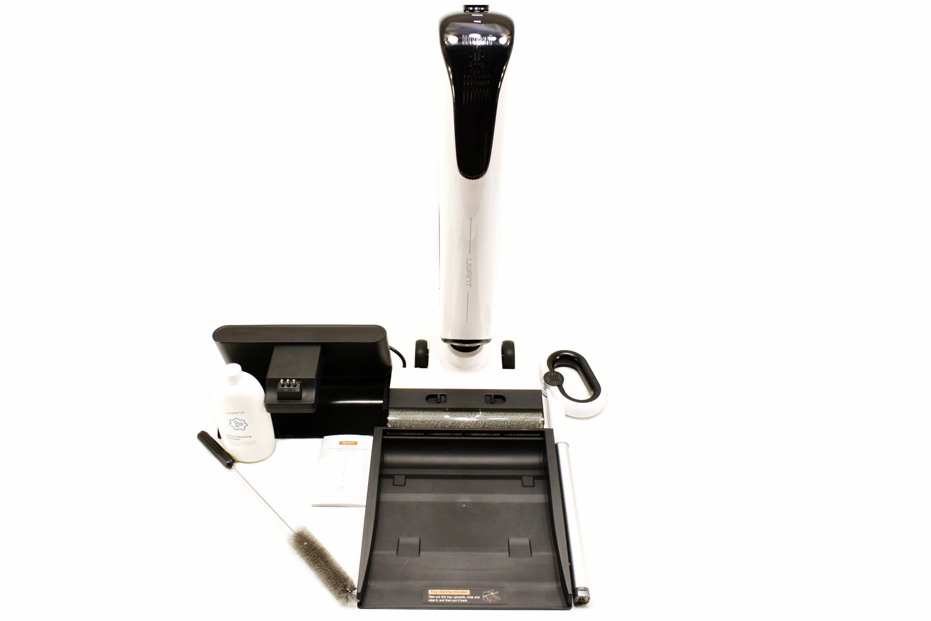 For an entry level model, the UWANT D100 packs a surprisingly advanced feature set into a compact 4.29kg frame, combining strong 17000Pa suction with a dual‑tank water system (650ml clean / 700ml dirty) for efficient wet‑and‑dry operation. Its 180° ultra‑flat design and dual‑edge cleaning allow it to reach tight spaces and clean as close as 2–4mm from walls, while the Intelligent Floor Sensing System automatically adjusts suction and water flow based on dirt levels. An 18‑ or 24‑path water spray system (depending on region) ensures even, streak‑free coverage, and the real‑time electrolyzed‑water function provides chemical‑free sanitizing during both cleaning and self‑cleaning cycles. The push‑in base station handles charging, self‑cleaning, and 60 °C hot‑air drying without lifting while the IPX6‑rated washable brush plus deodorizing rod keep maintenance simple and hygienic. With up to 35 minutes of runtime, a 450RPM brush roller, LED display, adaptive ergonomic handle, and solid‑liquid separation, the D100 is engineered as a highly practical all‑floor solution grounded in thoughtful mechanical design.