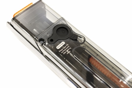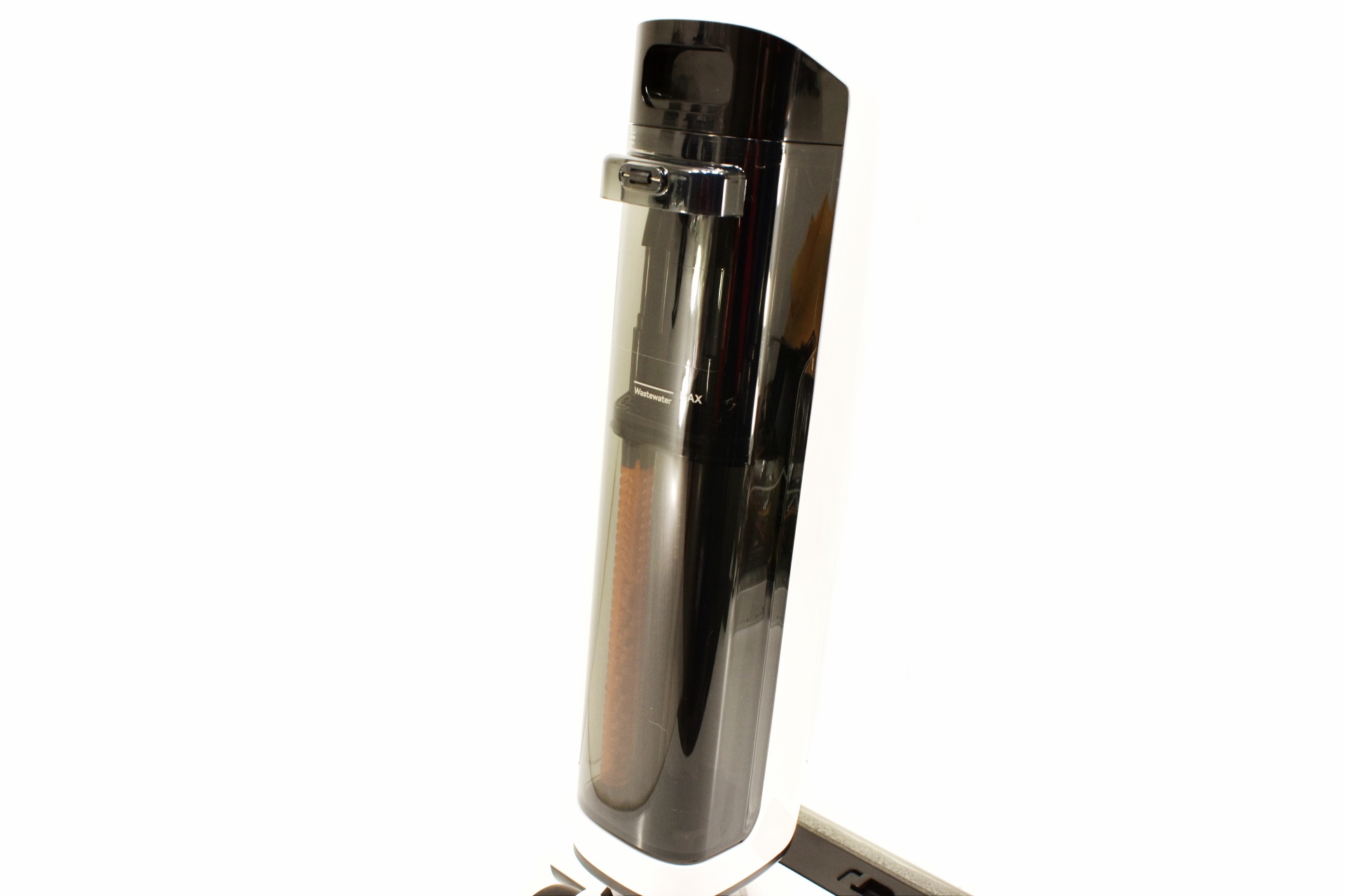 This time over this tank holds both the clean and dirty water, in separate compartments of course (inside you can see the orange deodorizing rod).