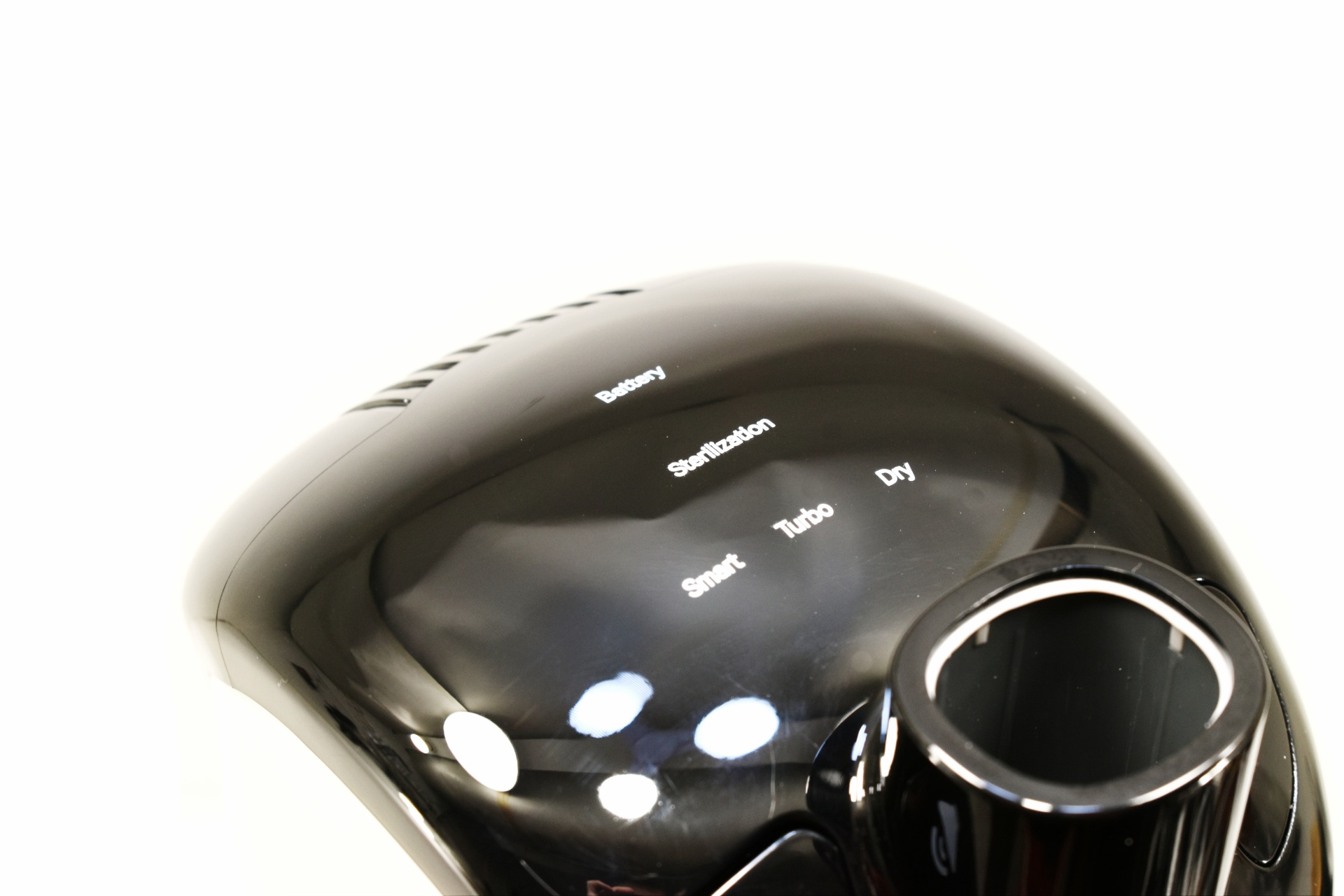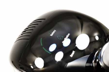On the top plastic end of the handle, we find the mode (smart/turbo) and power on/off buttons.