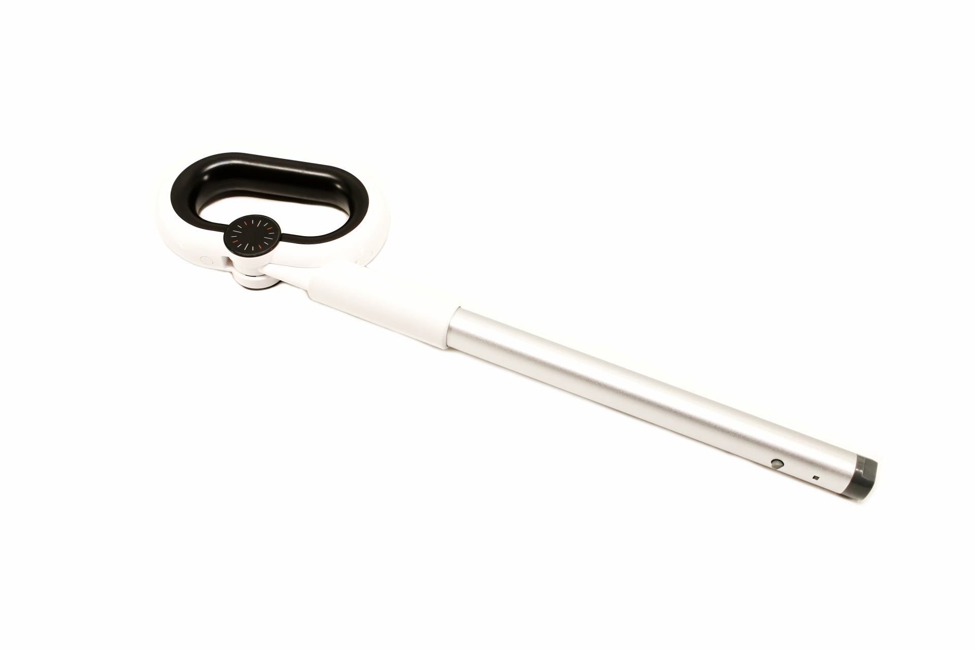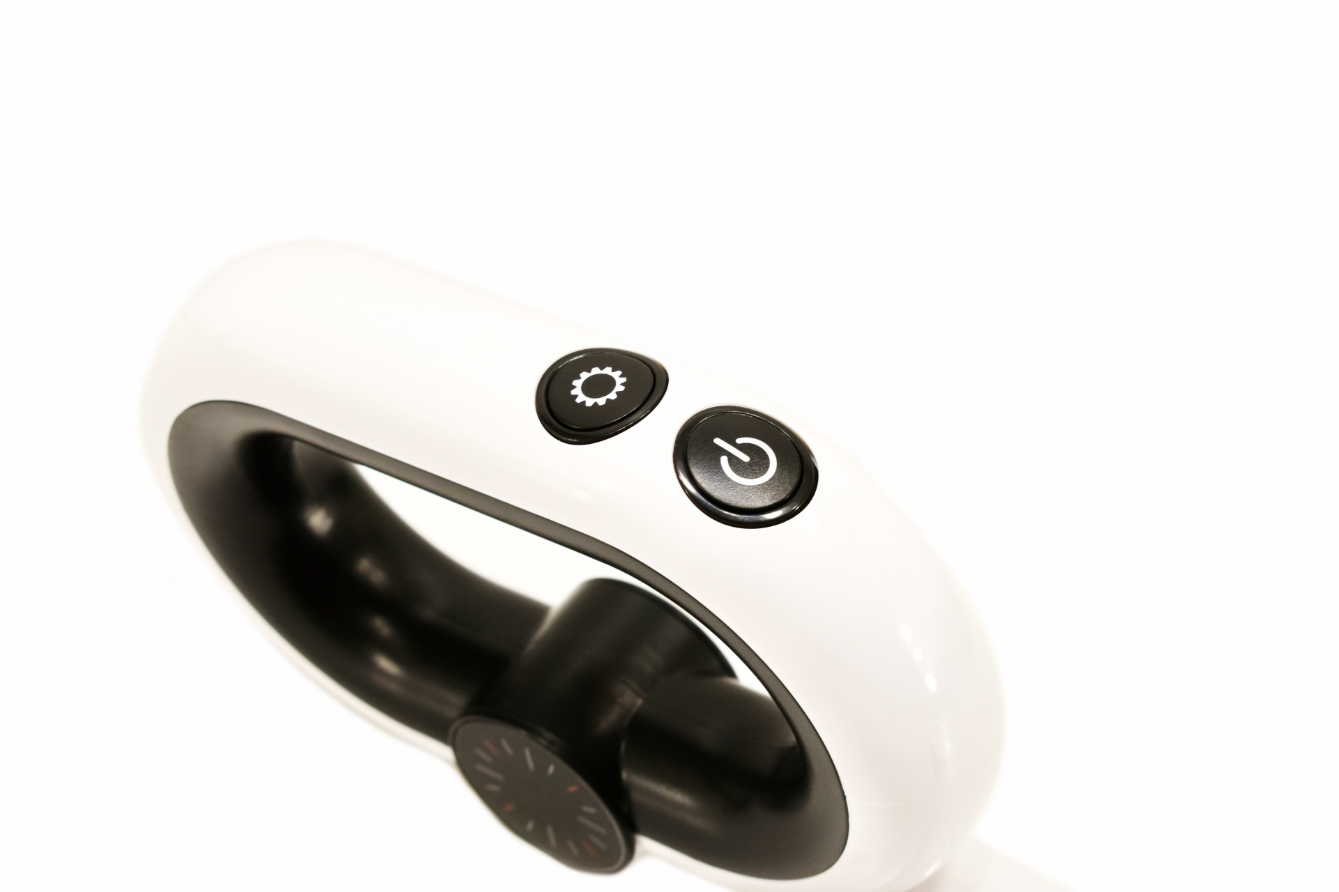 Left and right from the base of the handle we find the voice broadcast volume and self-cleaning/water volume control buttons.