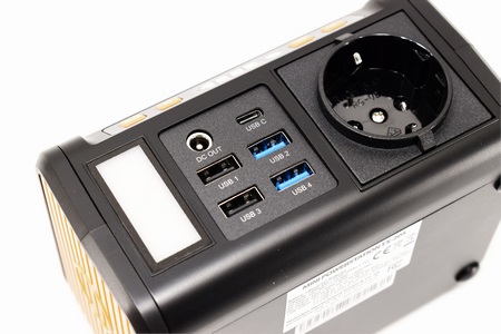 All available outputs (4 USB-A ports, USB-C port, DC port and the power socket) and the LED panel are all located on top of the TX-205.