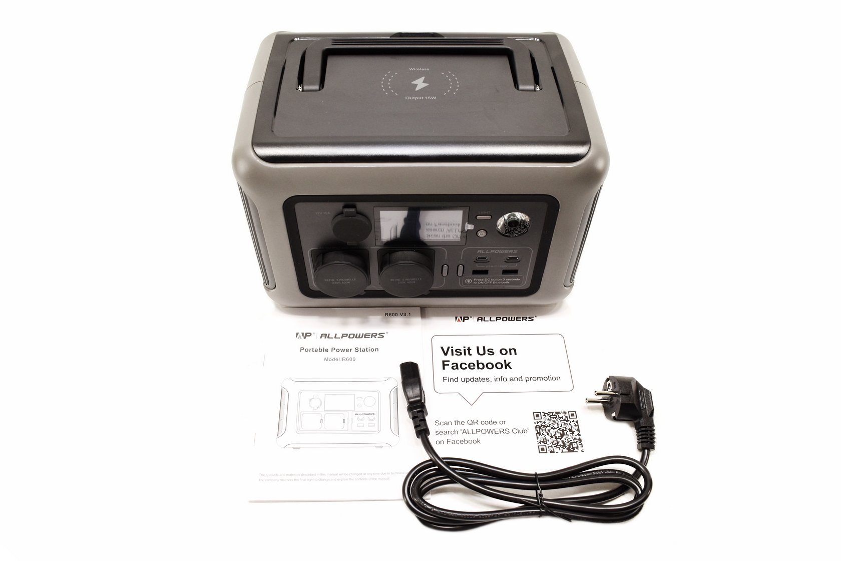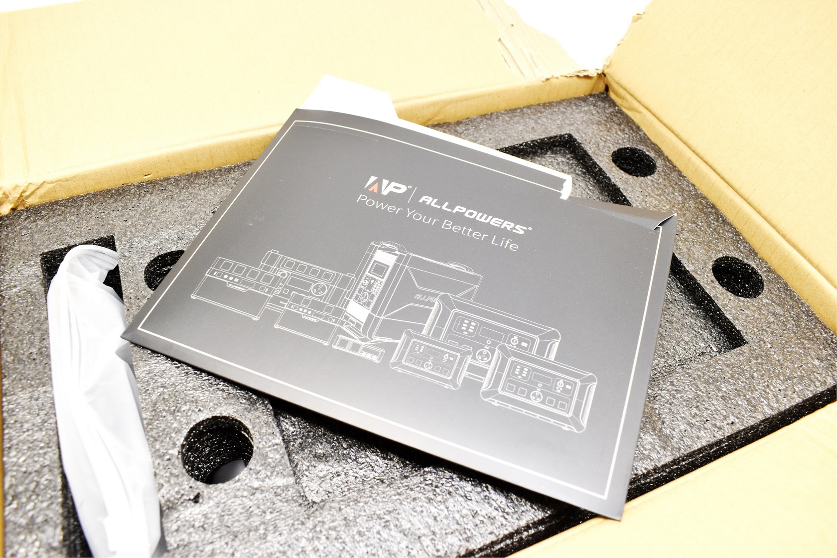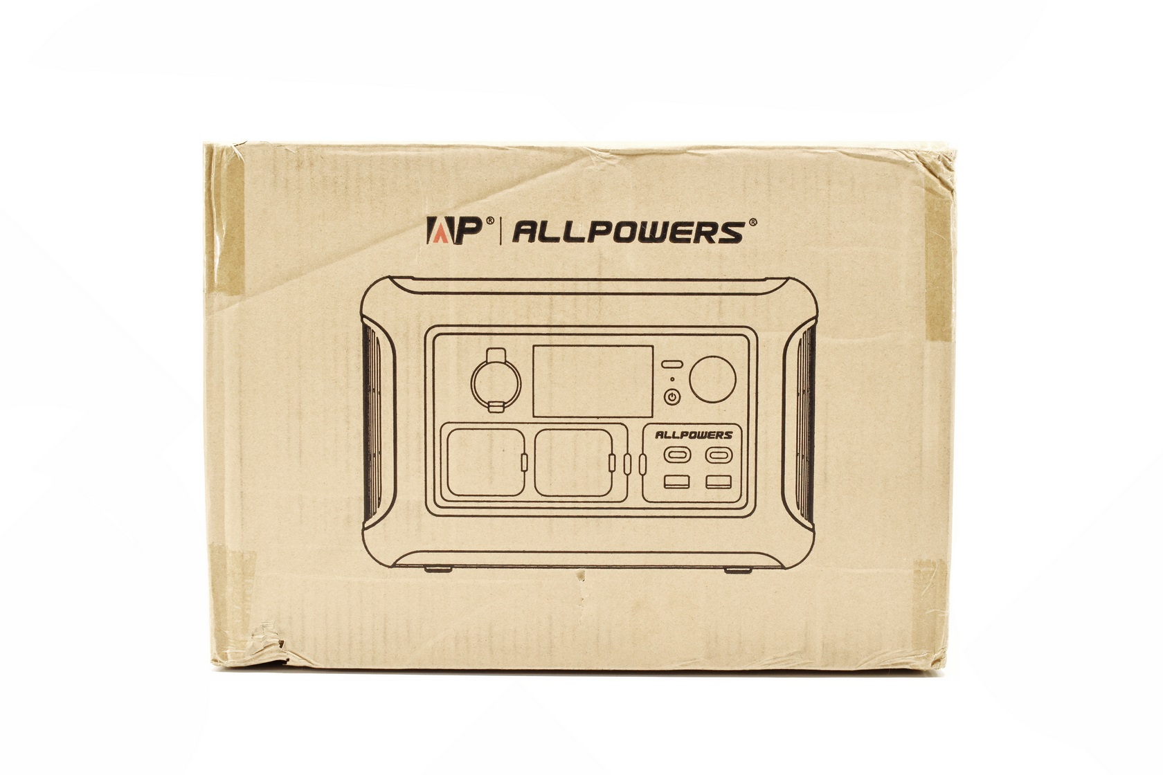 Allpowers ships the R600 inside a plain cardboard that has their logo and a product drawing at the front.