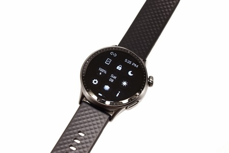 Pulling down the screen reveals all the quick settings such as phone pairing, lock, do not disturb mode, battery life, date, brightness, settings, menu view, about page, on/off, power save mode, flashlight mode and phone disconnection.