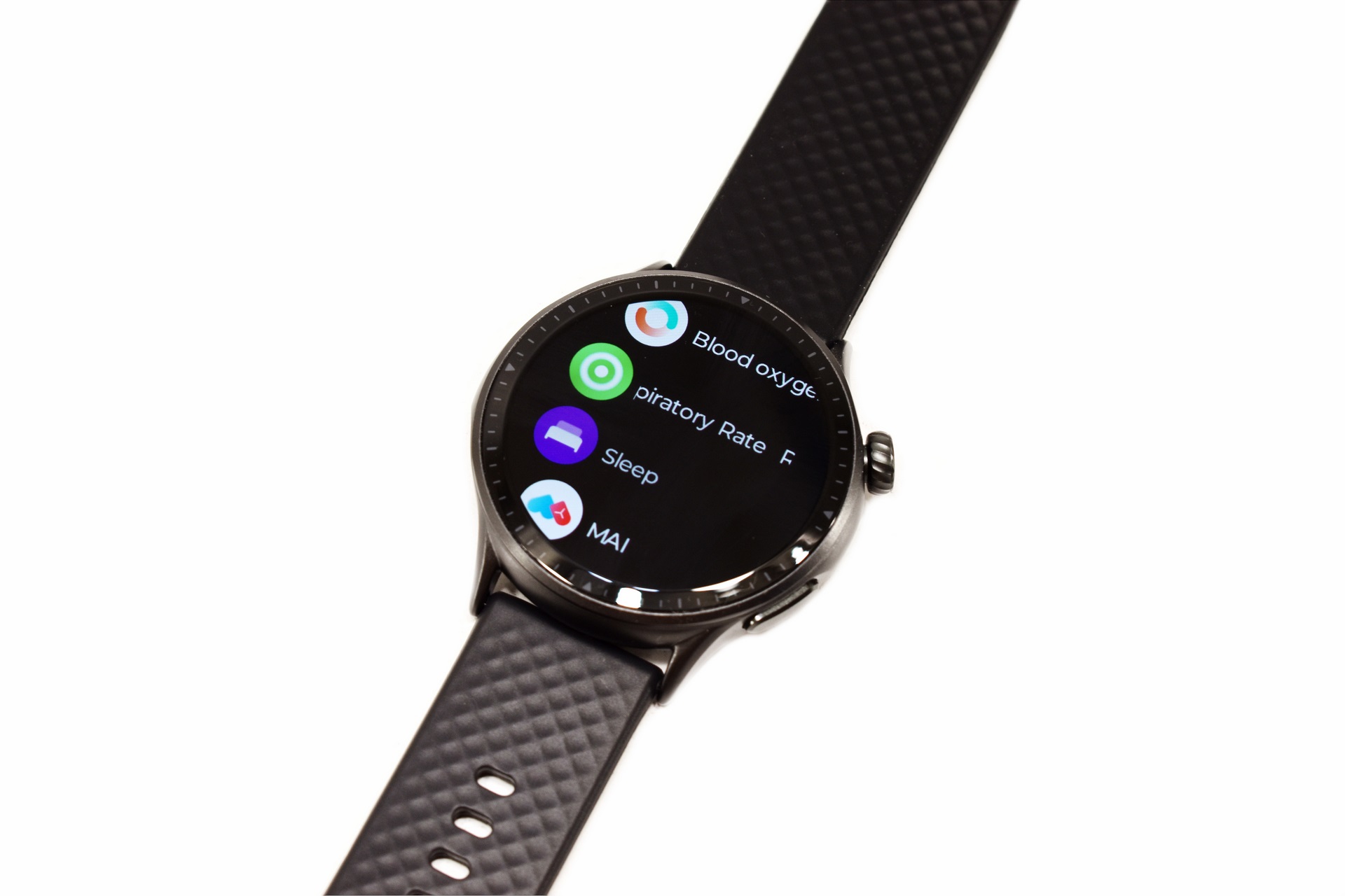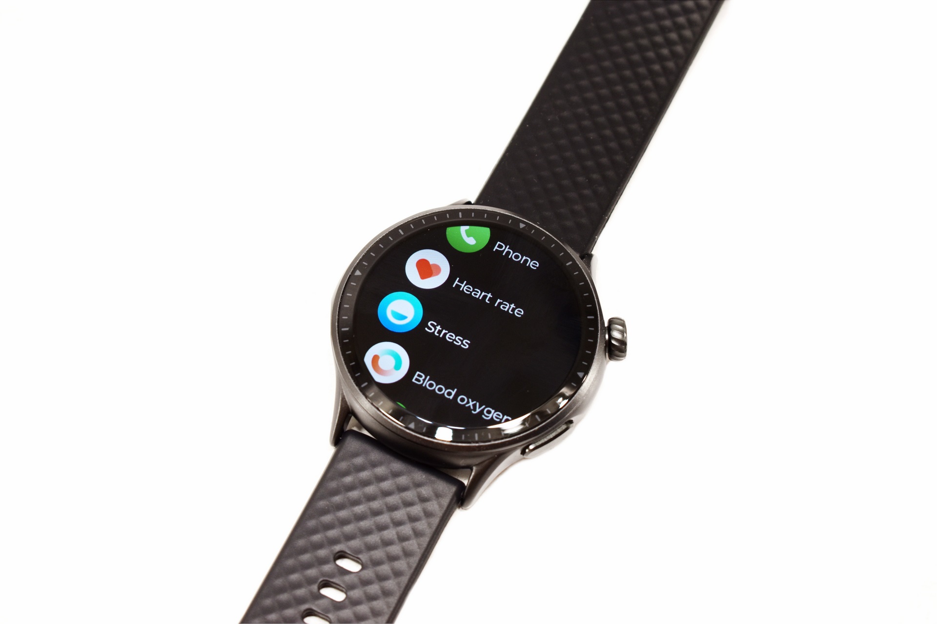 Pressing the top button launches the main tab from where you can choose all functions from sports, activities, phone calls, heart rate, oxygen, stress and respiratory measurement to weather, listening to music and accessing the settings tab.
