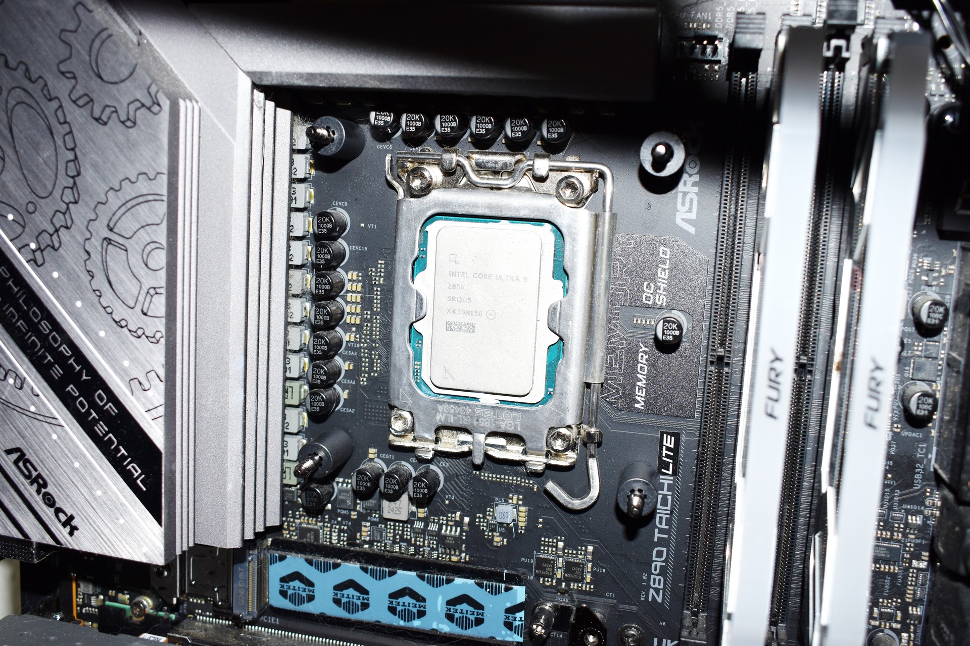 After the radiator you will need to place the backplate at the rear and the plastic standoffs on the inside side as seen above.