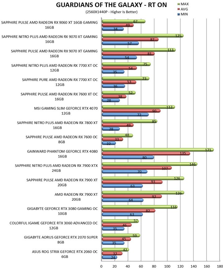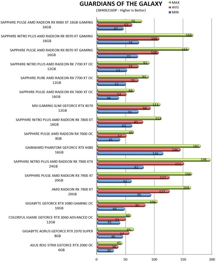 Guardians Of The Galaxy is based on the Dawn Engine by EIDOS. Graphics are set to maximum (RT Ultra/Off).