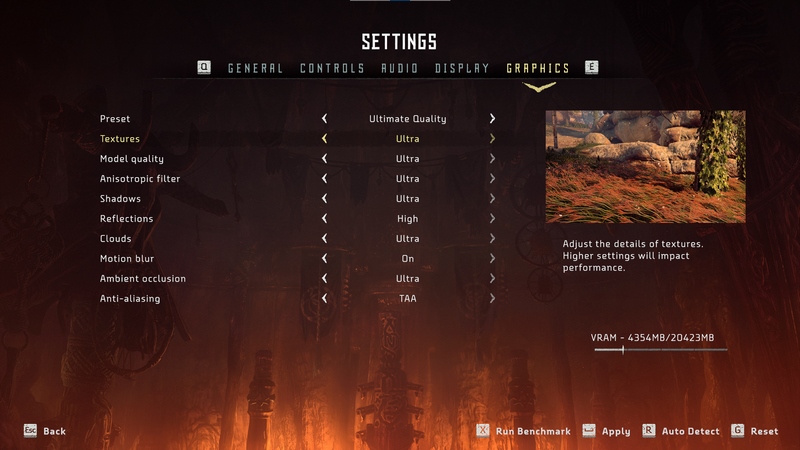 Horizon Zero Dawn CE (Complete Edition) is based on Guerrilla Games' Decima engine. Graphics are set to Ultimate Quality.