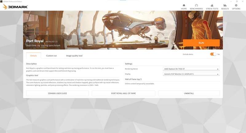 3DMark Port Royal is the world’s first real-time ray tracing benchmark for gamers. It shows you how well your PC handles ray tracing effects in real-time.