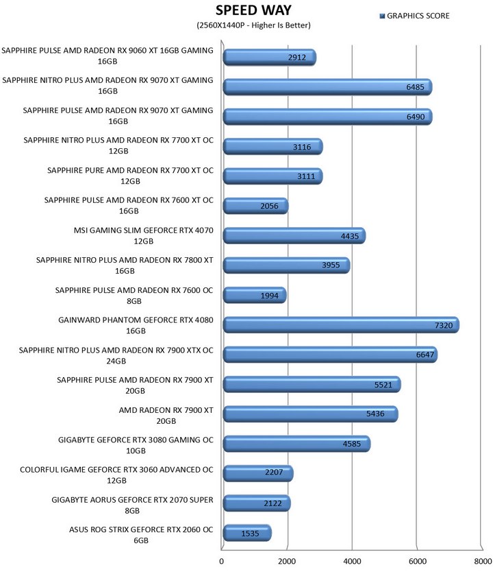 3DMark Speed Way’s engine is assembled to demonstrate what the latest DirectX API (12 Ultimate) brings to ray traced gaming, using DirectX Raytracing tier 1.1 for real-time global illumination and real-time raytraced reflections, coupled with new performance optimizations like Mesh Shaders.