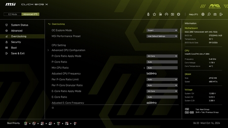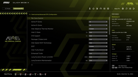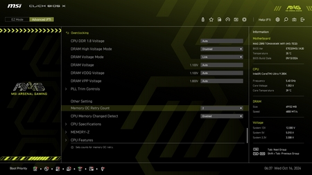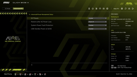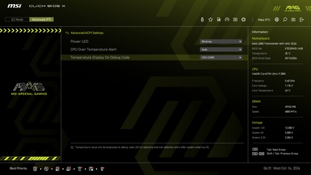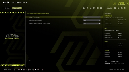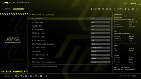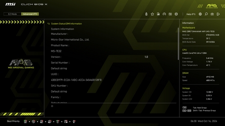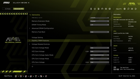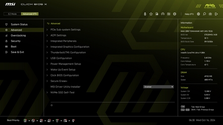 As with all current motherboards the MAG Z890 Tomahawk WiFi has EZ and advanced modes in the BIOS.