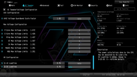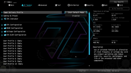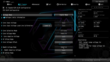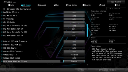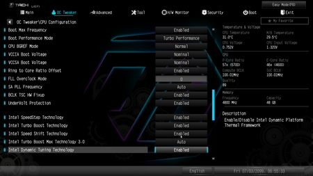 From the OC Tweaker tab, you can access everything needed for you to overclock your CPU and RAM (or just choose your RAM XMP profile) and then some.