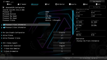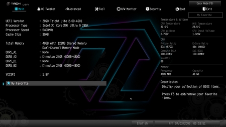 As usual the Z890 Taichi Lite also has two BIOS types, EZ and advanced.