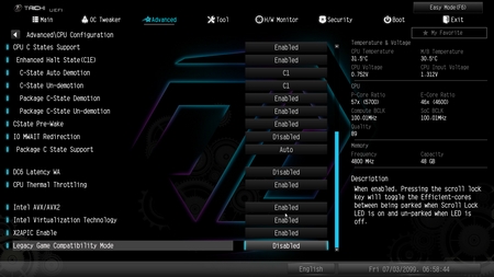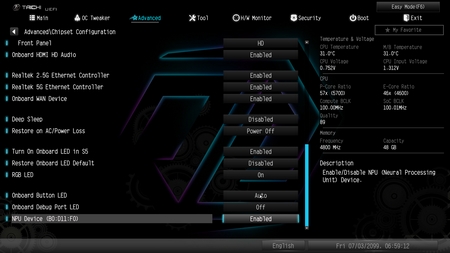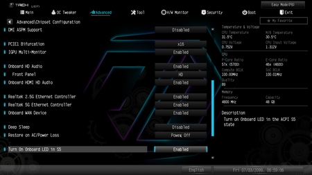 Typically, everything related to the motherboard and its peripherals is placed inside the advanced tab.