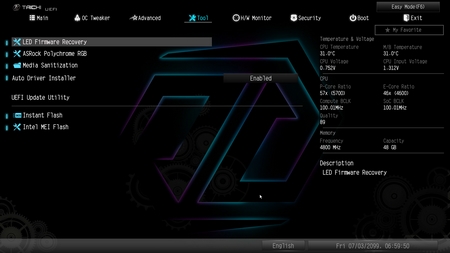 Inside the Tool tab you will find the ARGB media sanitization, auto driver installer and instant flash options.