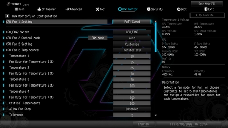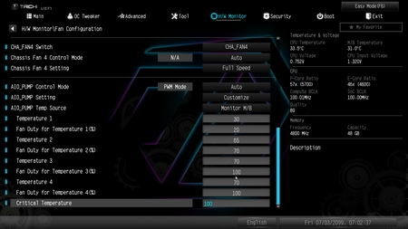 From within the hardware monitor tab you can check temperatures and adjust fan curves.