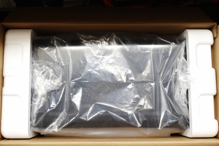 Typically, the case is wrapped inside a plastic bag and placed between two foam spacers.