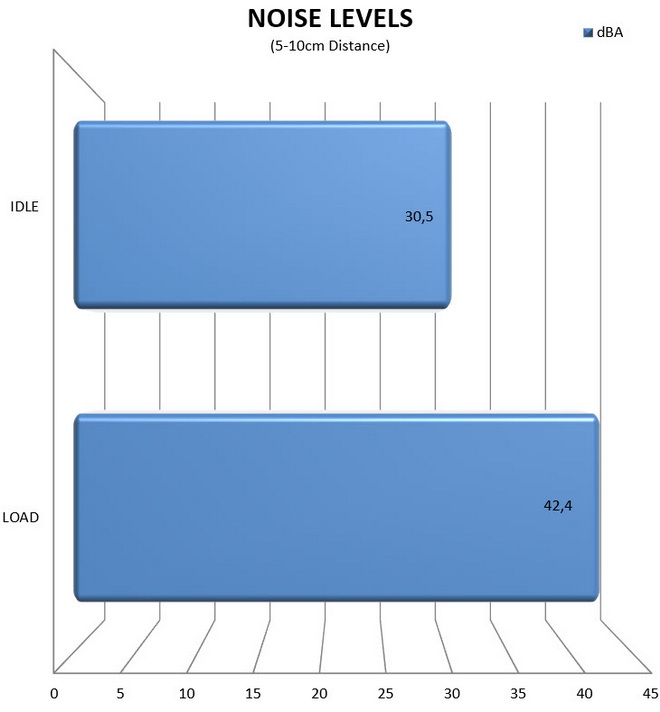 Rail stability was checked/measured with the CPUID Hardware monitor and a Metex multimeter which also recorded the system load in idle and in load. As always try to remember that the power consumption numbers listed in the graph are the highest (Peak) ones recorded during the entire duration of the tests and not the average ones. Noise levels coming from the fan were recorded using the high precision HD600 ExTech Sound dBA Meter from the rear of the unit and at a range of no more than 5-10cm. Readings under load are recorded the exact moment we manually switch the fans of all graphics cards from full speed to almost zero, that way the fan of the power supply does not have enough time to slow its RPM and so by doing this we get very accurate noise level readings. Needless to say, in order to get 100% accurate readings, you need to have a noise isolated room for that exact purpose, something which is quite impossible unless you are working inside a real lab (some people use very small noise insulated boxes but due to their size both heat and noise exceed normal levels and so the results can't really be considered to be 100% accurate, nor realistic for that matter). Also do take into account that since all noise measurements take place from just 5-10cm away the final noise levels to reach your ears will be considerably less.