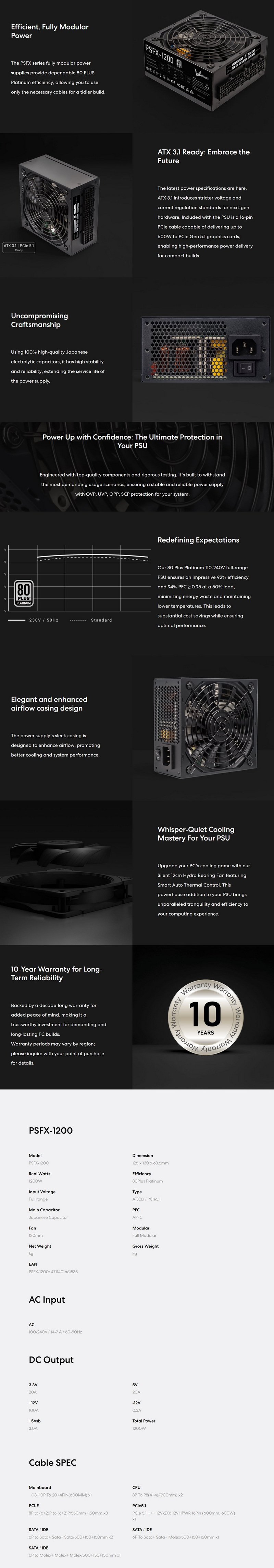 - 1200W Output (12V-2x6 600W)