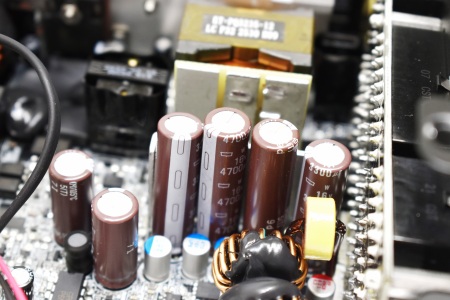 Primary capacitors are manufactured by Nippon Chemi-Con and are certified for use up to 105 degrees Celsius.