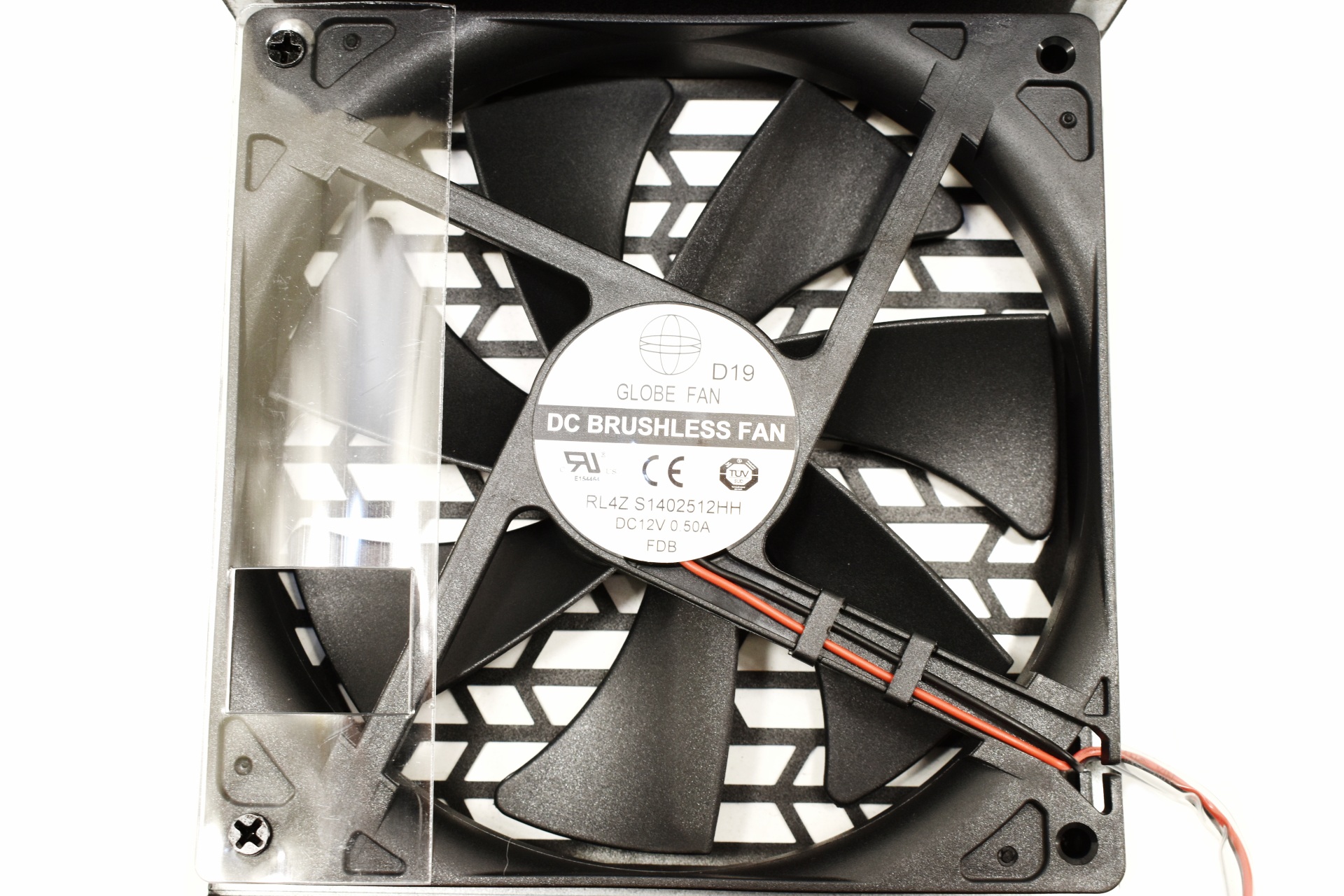 The 140mm FDB brushless fan is by GLOBE FAN and should be able to reach speeds of up to 1800RPM.