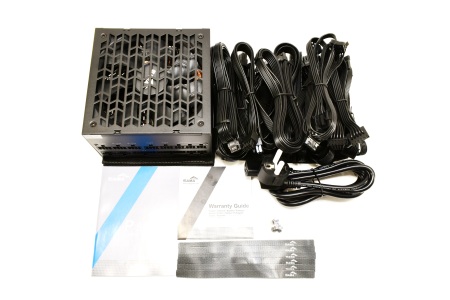 Aside the P1200 and its power cord inside the box you'll also find the modular power cables with their storage pouch, 6 cable straps, 5 mounting screws, warranty guide and the user manual.