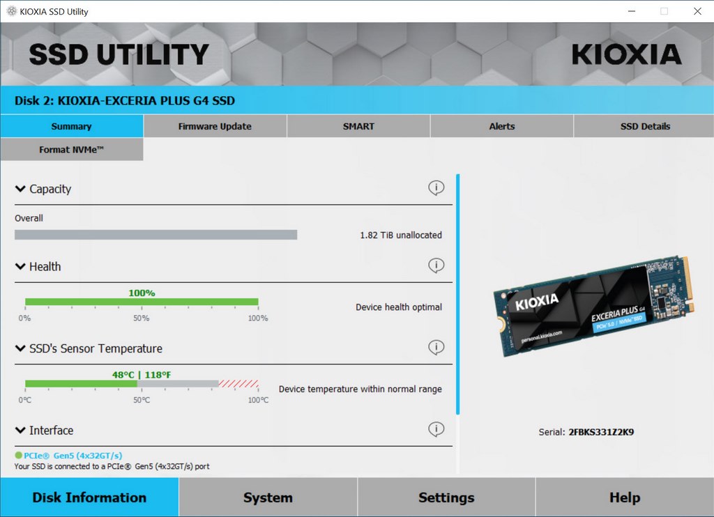 The SSD Utility by KIOXIA allows you to monitor your Exceria Plus G4 so I do suggest downloading it.