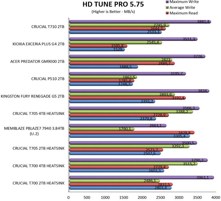 As expected, the T710 2TB Gen5 M.2 NVMe SSD by Crucial exchanges blows on every single test with the Renegade G5 by Kingston, primarily because they share the same NAND flash controller and DRAM. Where the T710 excels slightly is the 3D TLC NAND flash used (G9 276-layer) and so it’s slightly faster overall. Durability numbers are also slightly better but if we’re being honest both drives are great 2nd generation Gen5 M.2 NVMe SSD models which will easily cover consumer demands. The storage executive software has remained the same for years now and well, it’s among the most detailed and easy to use in the industry so I understand why Crucial has yet to make any changes. My sole issue is once again capacity and with 4TB as its maximum it’s certain to leave out consumers looking for more (again, it’s 2025).