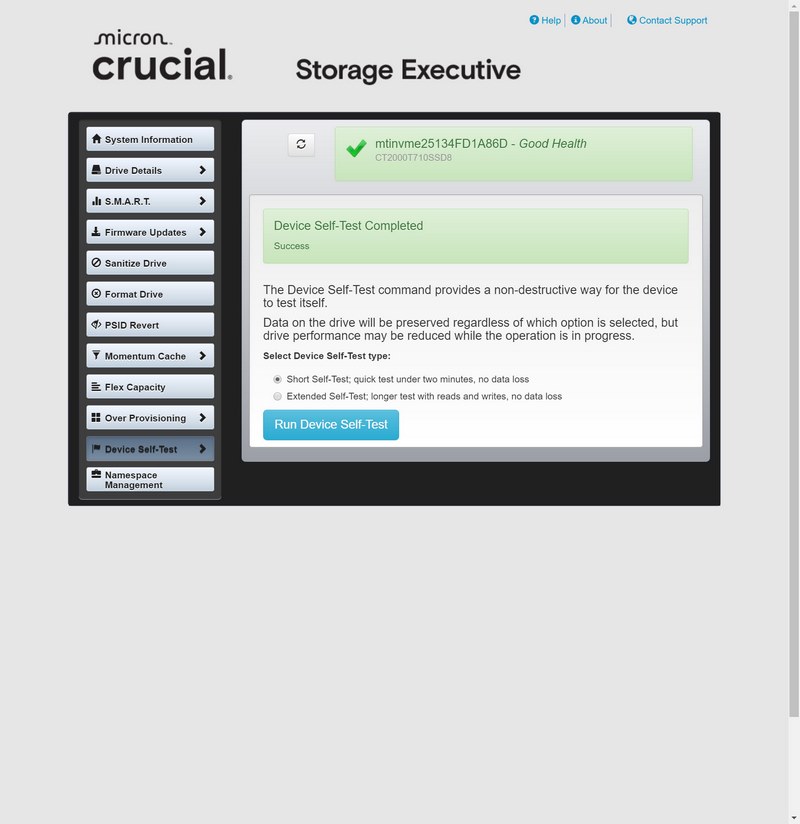 There's also a self-test function which can be useful if you are afraid something's wrong with your SSD.