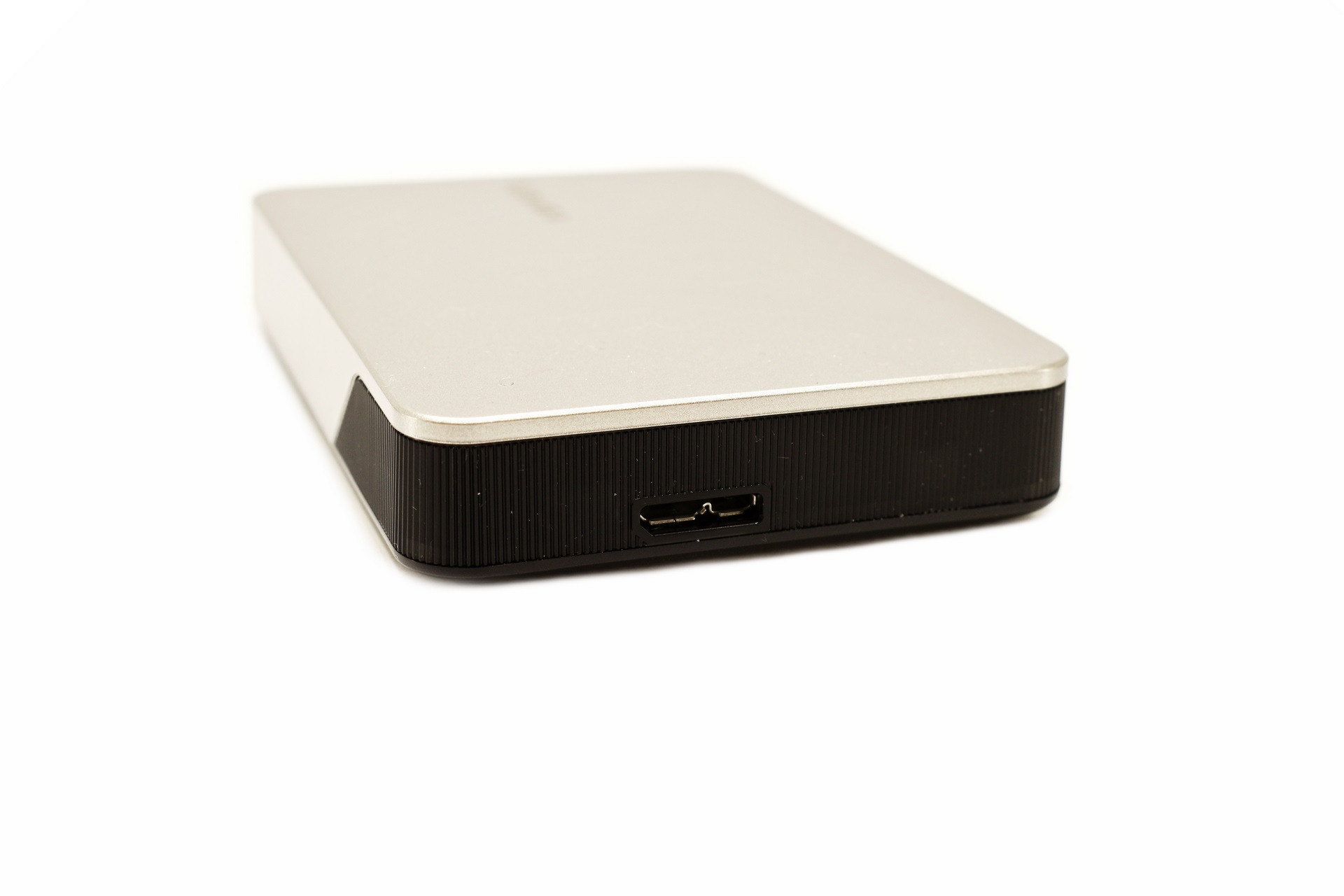The Micro-B USB port is located at the rear of the drive as seen above (right next to it is a blue activity LED).