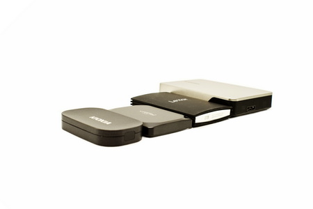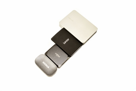 To have a better understanding about size I placed the Exceria Plus G2 next to the X10 Pro portable SSD by Crucial, Armor 700 portable SSD by Lexar and the Canvio Flex 2025 portable HDD by Toshiba.